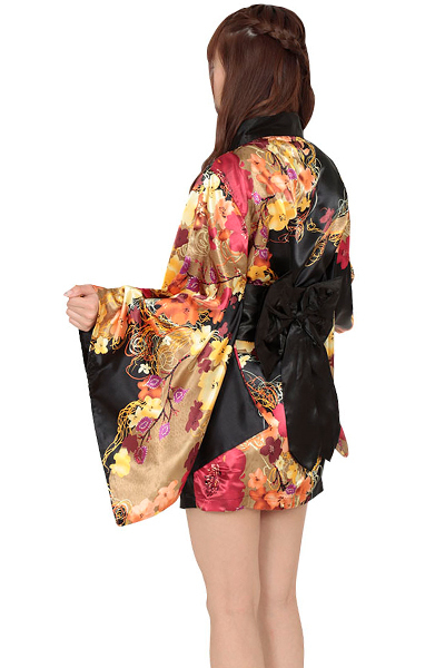 その姿はまるで夜の蝶…!艶やかな色彩が映えるセクシーなミニ着物コスチューム。